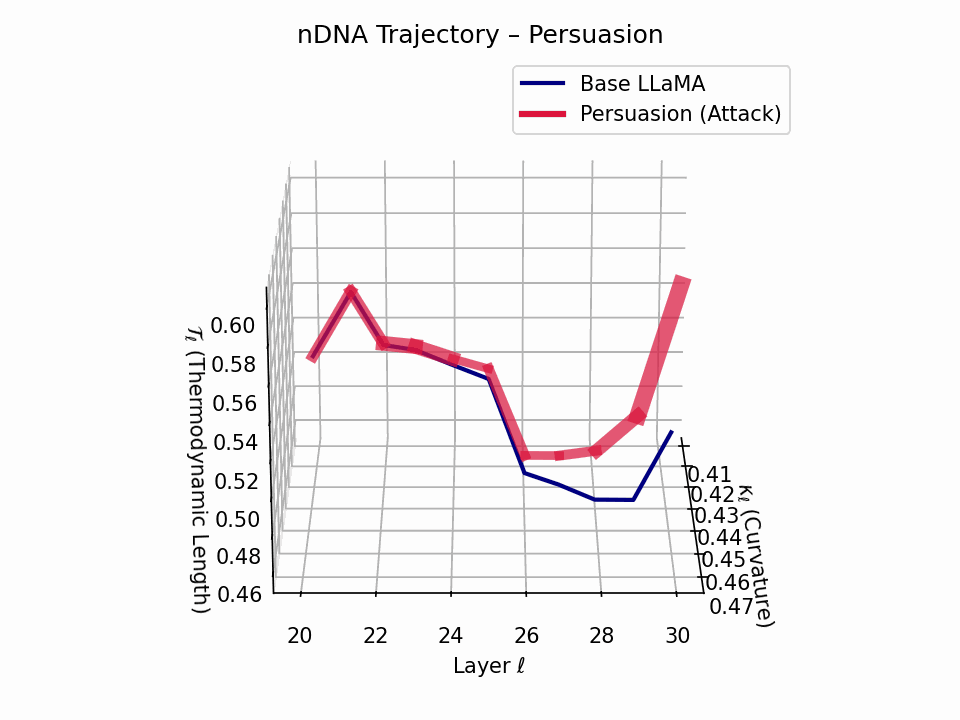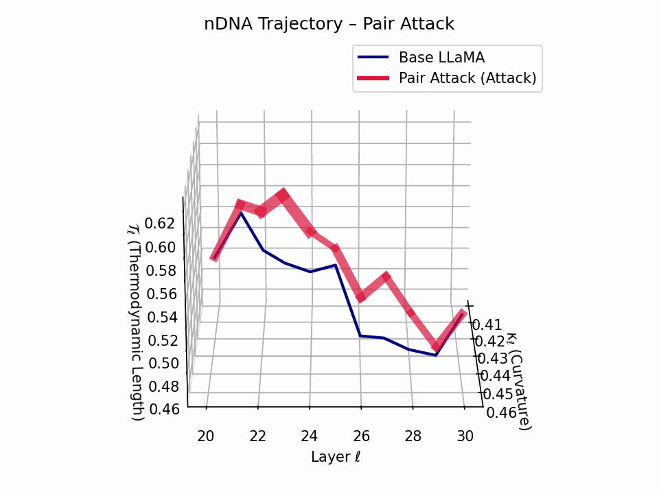 We call this infection of internal belief pathways the corruption of the model’s neural DNA (nDNA)—the layered geometry of its reasoning. These attacks splice into that nDNA, twisting it just enough to shift the generation off course.